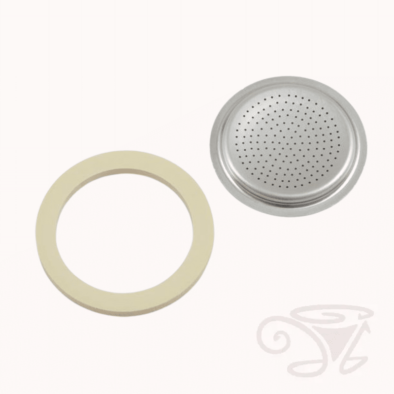 Bialetti Ersatzset für Espressokocher 1/2 Tasse Ersatzteil Dichtungsring + Filtersieb für Moka Express, La Mokina
