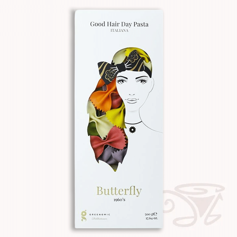 Ein Hauch Nostalgie trifft auf italienische Pastakunst: Die Good Hair Day Pasta Butterfly 1960’s begeistert mit ihrer farbenfrohen Vielfalt und erinnert an die Lebensfreude der 60er-Jahre. Hergestellt in Italien und verfeinert mit Tomaten, Spinat, Mangold, Möhren und Kurkuma, vereinen sich hier beste Zutaten zu einem kulinarischen Highlight.